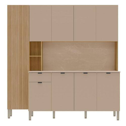 Perfeita para otimizar ambientes com praticidade e estilo, a Cozinha Compacta é produzida em MDP de 12mm e 15mm. Possui 09 portas equipadas com dobradiças com amortecimento, que garantem um fechamento suave e silencioso. As portas superiores são do tipo passante e a do paneleiro lateral possui sistema de fecho toque, dispensando puxadores. Além disso, o design conta com 01 gaveta com corrediças telescópicas 100% metálicas, nicho decorativo e prateleiras internas. Os pés reguláveis são fabricados em plástico resistente, e os puxadores em alumínio. O acabamento em pintura UV (fosco ou semibrilho) completa o visual moderno do móvel. Este móvel chegará em sua casa separado em 03 volumes.