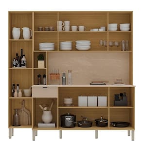 Perfeita para otimizar ambientes com praticidade e estilo, a Cozinha Compacta é produzida em MDP de 12mm e 15mm. Possui 09 portas equipadas com dobradiças com amortecimento, que garantem um fechamento suave e silencioso. As portas superiores são do tipo passante e a do paneleiro lateral possui sistema de fecho toque, dispensando puxadores. Além disso, o design conta com 01 gaveta com corrediças telescópicas 100% metálicas, nicho decorativo e prateleiras internas. Os pés reguláveis são fabricados em plástico resistente, e os puxadores em alumínio. O acabamento em pintura UV (fosco ou semibrilho) completa o visual moderno do móvel. Este móvel chegará em sua casa separado em 03 volumes.