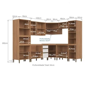 Características: 9 Portas com dobradiças metálicas 2 Gavetas com corrediças metálicas Pés com regulagem Puxadores em perfil de alumínio