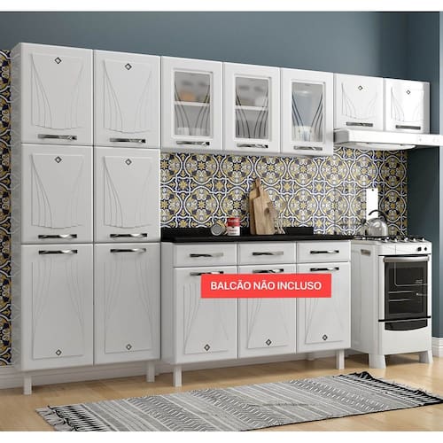 A Cozinha de aço Star New da Telasul é perfeita para quem busca qualidade e funcionalidade aliadas à beleza. Essa composição que inclui Paneleiro duplo, armário triplo médio e armário duplo baixo, cada detalhe contribui para tornar a cozinha um produto único: a elegante serigrafia em alto relevo nas portas, os apliques de alto brilho com acabamento em resina, os puxadores robustos na "cor" ônix. Além da estética do design, os vidros temperados garantem mais segurança e os pés possuem sistema de regulagem de altura – tudo para facilitar a rotina de um dos ambientes mais importantes da casa: a cozinha. enbsp;Os produtos da Telasul passam por um processo de pintura eletrostática e anticorrosiva com acabamento brilhoso, que garante a qualidade por mais tempo. A Cozinha Star New é a garantia de beleza e qualidade que faltava para a sua casa!