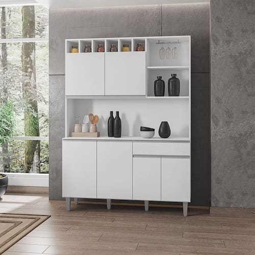 Características: Estrutura MDP Pintura UV Amplo espaço interno 06 Portas com dobradiças metálicas 01 Gaveta com corrediças metálicas Pés de Plástico.