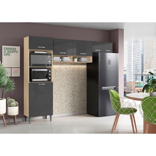 Cozinha Compacta Atenas 6 Portas Avena/ Grafite - Aramóveis