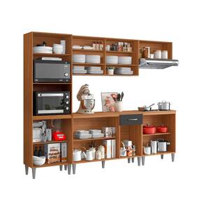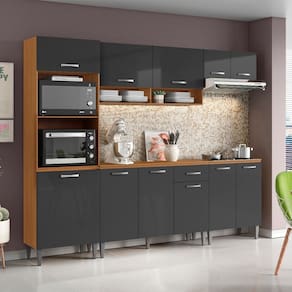 Características: Estrutura em MDP Acabamento em verniz texturizado 11 Portas com dobradiças metálicas 01 Gaveta com corrediças metálicas 2 Nichos para micro-ondas e forno elétrico Puxadores de plástico Pés de PVC resistentes Amplo espaço interno *ACOMPANHA TAMPO*