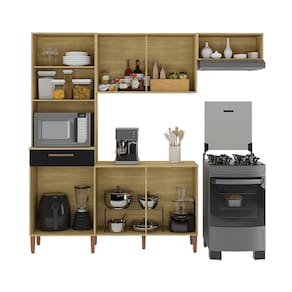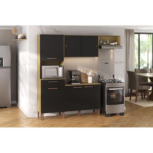 Composta por 5 portas e 1 gaveta, esta cozinha oferece espaço otimizado para organizar utensílios, mantimentos e demais itens essenciais do dia a dia.Fabricada em MDP de 12mm, apresenta alta resistência e durabilidade, suportando até 20kg por prateleira, garantindo segurança no uso diário.