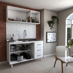 - Espessura da Estrutura: 12 mm - Possui Gavetas?: Sim - Quantidade de Gavetas: 3 - Peso Suportado nas Gavetas (Kg): 3 Kg - Material das Corrediças: Metálica - Tipo da Corrediça: Convencional - Possui Portas?: Sim - Quantidade de Portas: 5 - Material da Porta: MDP - Espessura da Porta: 12 mm - Tipo de Porta: Portas de Bater - Material das Dobradiças: Alumínio - Possui Vidro?: Não - Possui Espelho?: Não - Possui Prateleiras?: Sim - Quantidade de Prateleiras: 3 - Peso Suportado nas Prateleiras:: 3 Kg - Possui Puxadores?: Sim - Material do Puxador: Plástico - Possui Ripamento?: Não - Linha ou Coleção: Aura - Montagem Invertida?: Não Pode ser Montado Invertido - É frágil?: Não - Possui Nicho?: Não - Acompanha Tampo para Cooktop: Não - Material da Estrutura: MDP - Escala de Brilho: Alto Brilho - Acompanha Tampo para Pia?: Não - Possui Espaço para Pia?: Sim - Possui Rodízios?: Não - Acompanha Pia: Não - Possui Sapatas?: Não - Tamanho Pia Indicado (LXP): 120 x 50 cm - Possui Pés?: Sim - Pés com regulagem de altura?: Não - Quantidade de Pés/Sapatas: 5 - Possui Borda de PVC nas Bordas?: Não - Espaço Para Forno: Não - Espaço Para Micro-ondas: Não - Possui Vidro: Não - Material dos Pés: Plástico - Possui espelho?: Não - Cozinha Suspensa: Não - Tipo de Móveis de Cozinha: Armário Balcão - Acompanha: Cozinha Compacta + Kit Ferragens + Manual de Montagem - Acompanha Manual de Montagem: Sim - Como os Móveis Chegarão na Minha Casa: Desmontados, em caixas, acompanhados de todas as peças, ferragens e manuais para montagem - Grau de Dificuldade da Montagem: Fácil - Necessita de Montagem: Sim - Sistema de Montagem: Parafusos,Cavilhas e Minifix - Garantia (dias): 90 - Indicação de Uso: Cozinha - Observação: Objetos decorativos que aparecem nas imagens, não acompanham o produto. - Recomendação de Manutenção: Utilize um pano umedecido seguido de pano seco. - Revestimento /Acabamento: Laca