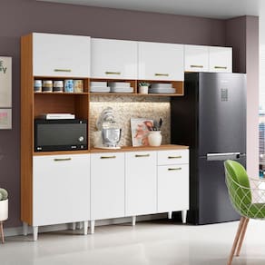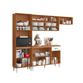 Características: Estrutura em MDP Acabamento em verniz texturizado 09 Portas com dobradiças metálicas 01 Gaveta com corrediças metálicas 1 Nicho para micro-ondas ou forno elétrico Puxadores de plástico Pés de PVC resistentes Amplo espaço interno *ACOMPANHA TAMPO*