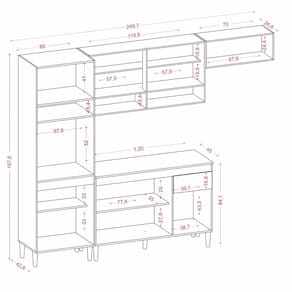 Dimensões da cozinha: Altura: 197,6 cm Largura: 249,7 cm Profundidade: 44,6 cm