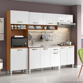Cozinha Compacta Aurora com Balcão 120cm sem Tampo e Balcão 70cm Cinamomo Branco Aramóveis - Branco | Cinamomo