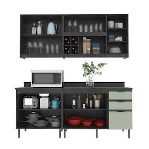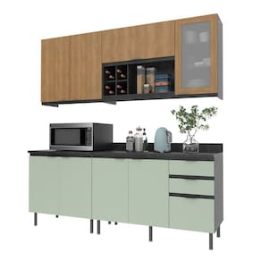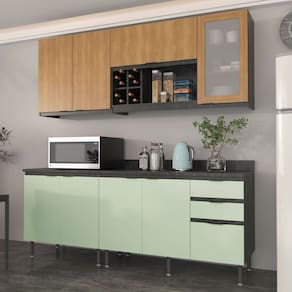 O(a) Cozinha Compacta Azaleia 8 Portas e 3 Gavetas com Divisor de Talheres Mármore Lunar/Verde Mar/Freijó - Tecnomobili é produzido em MDP na escala de brilho Brilho, e possui um grau de dificuldade de montagem: Médio.
