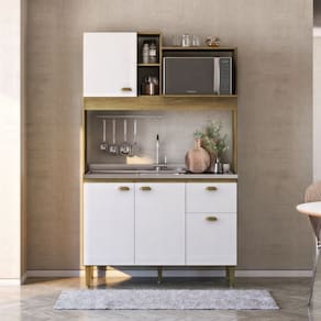 Cozinha Compacta Azaleia de 120cm 4 Portas e 1 Gaveta Mel / Branco - Bege