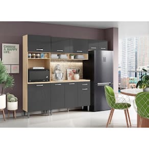 Cozinha Compacta + Balcão com Tampo Aurora Avena/ Grafito - Aramóveis - Grafite