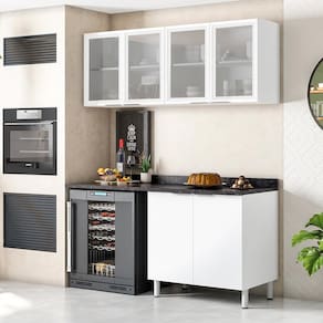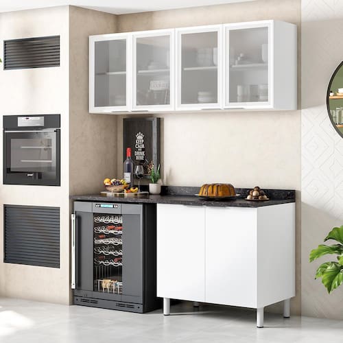Produzido com material de primeira linha, o seu armário aéreo conta com quatro portas de vidro que permite observar o interior do móvel, oferecendo maior praticidade de armazenamento. Além disso, ele dispõe de duas prateleiras, que auxiliará na organização de objetos e alimentos.