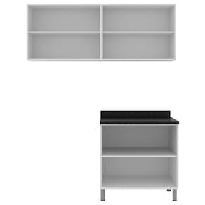 Já o balcão vem com duas portas e uma prateleira que levarão toda a funcionalidade que você precisa para guardar panelas, potes e mantimentos, tudo com mais praticidade e organização.