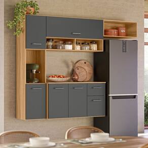 Cozinha suspensa completa com 4 peças (paneleiro, armário, geladeira e balcão) Como uma ótima opção para completar sua cozinha integrando-se à decoração o Kit Cozinha Becca oferece praticidade e bom gosto.