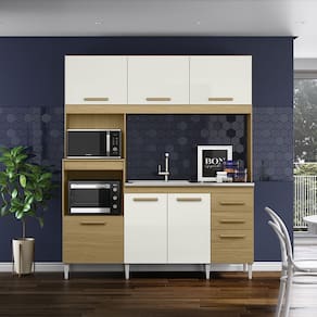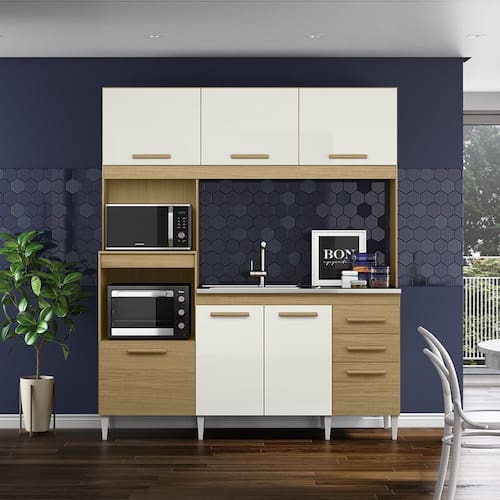 Características: Estrutura em MDP/ MDF Pintura semi-brilho 06 Portas com dobradiças metálicas 03 Gavetas com corrediças metálicas Amplo espaço interno Puxadores de Madeira NÃO ACOMPANHA TAMPO, NEM CUBA.