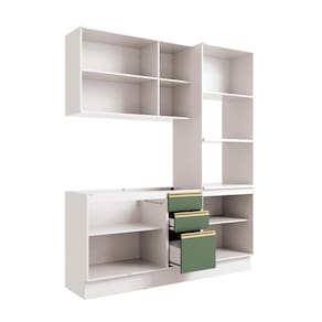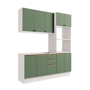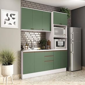 Complete sua cozinha com toda a beleza e praticidade que o Combo CB1299 da Cozinha Celeste da Kappesberg oferece. Compacto e funcional, ele conta com as divisórias perfeitas para manter seu espaço sempre organizado. Produzida em MDF de 15mm, o que proporciona robustez, firmeza e qualidade, além de um acabamento perfeito, o combo possui três peças, encaixando facilmente em todos os ambientes. E com até sete camadas de pintura, a caixaria é em pintura na cor branca e acabamento brilho, enquanto as frentes são na cor verde oliva e acabamento fosco. Uma combinação linda e refrescante, perfeita para compor a sua cozinha de um jeito único, com estilo e modernidade, ideal para preparar suas receitas com praticidade. Com módulo para eletrodomésticos, o kit forno e microondas possui prateleiras reforçadas em 25mm, garantindo o máximo de segurança. Com três peças, o conjunto possui 2,30m de altura e 1,92m de largura, uma ótima opção para quem possui pouco espaço mas não abre mão de organização. E para um melhor acabamento, o combo possui pés, mas acompanha as ferragens para ser montado suspenso na parede, deixando sua cozinha do seu jeito. Os diferenciais ficam por conta das dobradiças com amortecimento, garantindo um fechamento suave e sem ruídos, das corrediças telescópicas e os puxadores na cor dourada, com modelos diferentes no balcão e aéreos, completando o estilo e a qualidade do produto. Viva momentos especiais e renove seu espaço com a Cozinha Celeste da Kappesberg.