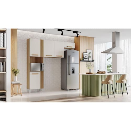 Cozinha Juma Produzido em MDP de 15mm e 12mm de espessura, proporcionando resistência e durabilidade. Amplo espaço interno, garantindo maior firmeza ao móvel. Puxadores de MDF dando maior resistência. Dobradiças metálicas dando maior durabilidade e resistência ao abrir e fechar as portas. Acabamento em verniz texturizado fosco e verniz brilho nas portas, garantindo a conservação do móvel, além de manter a beleza constante oferece ao móvel, resistência e durabilidade prolongando a vida útil do produto.
