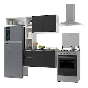 Dimensões do produto montado: Altura: 138cm | Largura: 152cm | Profundidade: 30cm (aéreos) - 38cm (balcão com tampo) Espaço para fogão/geladeira - Altura: ajustável - Largura: 62cm *Você pode consultar as medidas internas na imagem técnica do produto.