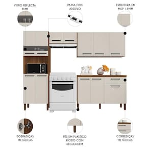 O Armário de Cozinha Compacta Com Balcão 251cm Louis K02 Nogueira/Off White, da Mpozenato é a solução perfeita para sua cozinha, principalmente se você se precisa otimizar espaço para que o ambiente fique prático e funcional.