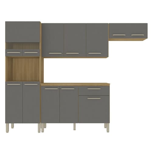 Cozinha Compacta Com Balcão 251cm Louis Plus Freijó/Gris Z06 - Mpozenato
