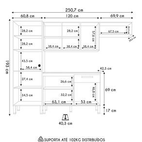 Nicho para Micro-ondas/Forno (L x A): 58,4 x 43,5 cm.