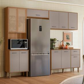 A Cozinha com balcão Paolla traz a praticidade e funcionalidade que você precisa, suas portas superiores se tornam o diferencial do produto pelo vidro espelhado, trazendo o destaque para a cozinha.