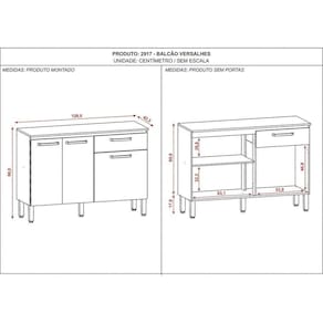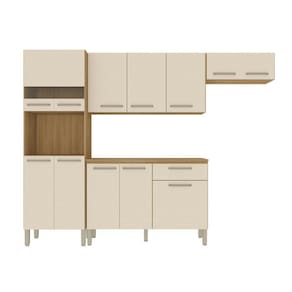 A Cozinha e Balcão Versalhes trazem a praticidade e funcionalidade que você precisa, suas portas superiores se tornam o diferencial do produto pelo vidro espelhado, trazendo o destaque para a cozinha. Suas repartições bem elaboradas podem acomodar todas as suas necessidades para com uma cozinha, além de dispor de um nicho para micro ou forno elétrico. Junto com o balcão Versalhes seu ambiente estará completo contando com uma gaveta e três portas para acomodar talheres e outros objetos. Sua matéria prima vem de madeiras de reflorestamento, se tornando uma peça de design e responsabilidade com o meio ambiente. Acabamento da Prateleira: Pintura Texturizada UV Escala de Brilho da Prateleira: Fosco Acabamento da Gaveta: Pintura Texturizada UV Escala de Brilho da Gaveta: Brilhante Material do Puxador da Gaveta: Plástico Acabamento da Porta: Pintura Texturizada UV Escala de Brilho da Porta: Brilhante Acompanha Rodapé Decorativo: Não Acompanha Tampo: Sim Altura dos Pés: 17 cm Altura Máxima dos Pés: 17.0000 Ambiente Principal: Cozinha Balcão Suporta Pia: Não codigo_ean: 7900288184979 Complexidade da Montagem: Média: pode ser montado por mais de uma pessoa e/ou necessite de maior conhecimento para montagem Cor: Freijó / Soft Cor do Produto: Freijó / Soft Cor Flex: Não Cor Interna: Freijó Escala de Brilho: Brilhante Espessura do Material da Estrutura: 12 mm Espessura do Tampo: 15 mm Gaveta com Chave: Não Itens Inclusos: 1 Cozinha, 1 Balcão, Manual de Montagem e Kit Ferragens Linha ou Coleção: Versalhes Manual de Montagem e Instalação: https://product-hub-prd.madeiramadeira.com.br/176458327/documents/80cf42fa-5582-4a63-9b9d-365755b74cc12990977643117496492395685.pdf Marca: Kits Paraná Material da Corrediça: Metálica Material da Dobradiça/Corrediça da Porta: Metálica Material da Gaveta: MDP Material da Porta: MDP Material da Prateleira: MDP Material do Tampo: MDP Material dos Pés: Plástico Medida de cada item (A x L x P): Cozinha: 193cm x 250,7cm x 40,3cm; Balcão: 86cm x 120cm x 42,3cm modular: Não Montagem Flex: Não Necessita Montagem: Sim O Balcão Acompanha Pia: Não Origem do Produto: Nacional Pés Reguláveis: Sim Peso: 83,9 kg Peso Máximo por Gaveta: 4 kg Peso Máximo por Prateleira: 10 kg Possui Pés: 09 Possui Portas: Sim Possui Prateleiras: Sim Possui recorte para Cooktop: Não Possui Rodízio: Não Possui Vidro: Sim Produto Montado: Sim Recomendações de Uso, Manutenção e Limpeza: Limpeza do produto somente com pano seco ou levemente umedecido, não utilizar produtos abrasivos. Respeitar o limite de peso estabelecido no esquema de montagem. Evitar mover o produto com utensílios dentro. Sapatas Niveladoras: Não Sistema de Montagem: Parafuso, prego, cavilha, bucha e suporte de prateleira Suporta Até (kg): 122 kg Tamanho Indicado da Pia: Não Tipo de Corrediça da Gaveta: Metálica Simples Tipo de Dobradiça da Porta: Simples Tipo de Dobradiça/Corrediça da Porta: Simples Tipo de Puxador da Gaveta: Externo Tipo de Puxador da Porta: Embutido Marca: Não Informado
