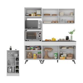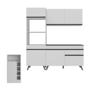 Dimensões do produto montado: Cozinha - Altura: 203cm | Largura: 182cm | Profundidade: 53cm Bancada/Mesa - Altura: 91,5cm | Largura: 137cm | Profundidade: 45cm *Você pode consultar as medidas detalhadas na imagem técnica do produto.