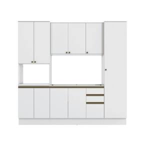 Acabamento: Pintura Brilho | Cor: Branco | Corrediças: Telescópicas | Dobradiça: Com Amortecimento | Garantia: 3 meses para defeito de fabricação | Matéria-prima: MDF | Peso suportado por cada gaveta: 6 Kg | Peso suportado por cada prateleira: 7 kg | Puxadores: Metálicos / Puxadores de Metal e de Alumínio | Quantidade de gavetas: 3 | Quantidade de portas: 1 / 3 | Quantidade de prateleiras: 1 / 2 / 4 / 5 | Sistema de montagem: Parafuso Philips | Tipo de porta: Bater | Tipo de móveis de cozinha: Cozinha completa | Tipo de garantia: Garantia do fabricante | Duração da garantia: 3 meses | Montagem: Necessita montagem