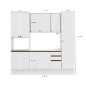 Perfeito para quem gosta de beleza sem abrir mão de praticidade, o Combo CB1301 da Cozinha Celeste da Kappesberg é a escolha ideal. Compacto e funcional, ele conta com as divisórias perfeitas para deixar tudo organizado. Produzido em MDF de 15mm, o que garante robustez, firmeza e qualidade, além de um acabamento perfeito, o combo encaixa em todos os ambinetes, facilitando as tarefas do dia a dia. Com até sete camadas de pintura, seu acabamento brilho na cor branca garante luminosidade e elegância ao espaço, sendo ideal para cozinhas, facilitando a limpeza. Com módulo para eletrodomésticos, o kit forno ou microondas possui prateleiras reforçadas em 25mm, garantindo o máximo de segurança. Medindo 2,30m de altura e 2,40m de largura, é uma ótima opção para quem possui pouco espaço e não abre mão de versatilidade. E para um melhor acabamento, o combo possui pés, mas acompanha as ferragens para ser montado suspenso na parede, deixando sua cozinha do seu jeito. Os diferenciais ficam por conta das dobradiças com amortecimento, garantindo um fechamento suave e sem ruídos, das corrediças telescópicas e os puxadores na cor dourada, com modelos diferentes no balcão e aéreos, completando o estilo e a qualidade do produto. Viva momentos especiais e renove seu espaço com a Cozinha Celeste da Kappesberg.