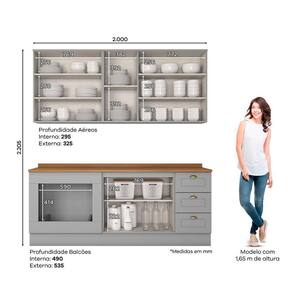 Composicao do Kit (AxLxP): 1 Aereo 02 Portas 83 x 80 x 32,5 Cm; 1 Aereo 03 Portas 83 x 120 x 32,5 Cm; 1 Balcao Pia 02 Portas e 03 Gavetas 82 x 120 x 51 Cm; 1 Balcao Forno Embutir 82 x 80 x 51 Cm; 1 Tampo 2,5 x 80 x 53,5 Cm; 1 Tampo 2,5 x 120 x 53,5 Cm;