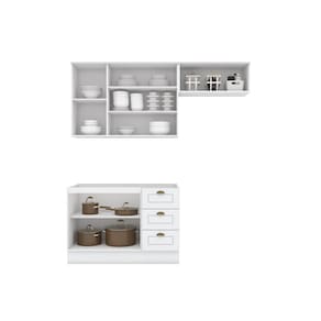 Um novo conceito inspirado nas clássicas cozinhas estilo americano, seu design contemporâneo embeleza qualquer ambiente. Projetado para proporcionar praticidade e funcionalidade ao uso. Produto 100% MDF, possui detalhes usinados em baixo relevo nas portas e gavetas, puxadores nos balcões em formato de concha e nos aéreos são pontuais, ambos na cor ouro velho, Possui Balcões com 845mm de altura, aéreos com 830 mm de altura, gavetas com corrediças telescópicas proporcionando mais suavidade durante a abertura e ainda dobradiças com 35mm com a tecnologia Soft Close. A sua instalação pode ser feita tanto com o uso dos rodapés ou suspensa. Este produto foi desenvolvido para atender os mais criteriosos usuários aliando funcionalidade com elegância. Acabamento da Prateleira: Pintura Texturizada UV Escala de Brilho da Prateleira: Fosco Acabamento da Gaveta: Pintura Texturizada UV Escala de Brilho da Gaveta: Fosco Material do Puxador da Gaveta: Metal Acabamento da Porta: Pintura Texturizada UV Escala de Brilho da Porta: Fosco Material do Puxador da Porta: Metal Acabamento dos Pés: Pintura Acompanha Tampo: Sim Altura dos Pés: 14,5 cm Altura Máxima dos Pés: 14.5000 Ambiente Principal: Cozinha codigo_ean: 7909903165997 Complexidade da Montagem: Alta: deve ser montado por um montador especializado Cor: Branco HP/Calcare Cor do Produto: Branco HP/Calcare Cor Flex: Não Cor Interna: Trama Escala de Brilho: Fosco Gaveta com Chave: Não Informações Complementares: Balcão Pia não acompanha tampo em inox, Itens Inclusos: 1 Cozinha Compacta, Kit Ferragens e Manual de Montagem Linha ou Coleção: Emily - Henn Manual de Montagem e Instalação: https://product-hub-prd.madeiramadeira.com.br/802371/documents/d061adde-ec61-4baa-8f2d-f348b9393b1mpacta3pecasgeladeiraemily.pdf Material da Dobradiça/Corrediça da Porta: Metálica Material da Gaveta: MDF Material da Porta: MDF Material da Prateleira: MDF/MDP Material do Fundo: MDF Material do Tampo: MDP Material dos Pés: MDF Medida de cada item (A x L x P): 1 Aéreo 03 Portas (AxLxP) 83cm X 83cm X 32,5cm, 1 Balcão 03 Gavetas 02 Pts (AxLxP) 82cm X 82cm X 51cm, 1 Aéreo 01 Porta Basculante (AxLxP) 34cm X 34cm X 32,5cm. modular: Sim Montagem Flex: Pode ser montado em 2 formatos, tanto suspenso, quanto com rodapés (Peças necessárias para essas 2 opções inclusos na caixa). Além disso, pode ser montando com Kit Pés, este é vendido separadamente através da ID 630160 Kit 4 Pés Cônicos para Cozinha Emily Necessita Montagem: Sim O Balcão Acompanha Pia: Não Origem do Produto: Nacional Pés Reguláveis: Não Peso: 94 kg Peso Máximo por Gaveta: 3 kg Peso Máximo por Prateleira: 8 kg Possui Pés: Rodapé Possui Portas: Sim Possui Prateleiras: Sim Possui recorte para Cooktop: Não Possui Rodízio: Não Produto Montado: Sim Recomendações de Uso, Manutenção e Limpeza: Para limpeza do seu móvel, use uma flanela seca ou umedecida. Não utilize produtos químicos que possam danificar o produto.. Sapatas Niveladoras: Sim Sistema de Montagem: Parafusos e Cavilhas Suporta Até (kg): 100 kg Tamanho Indicado da Pia: 120cm x 53 cm Tamanho Indicado do Tampo: 120cm x 53 cm Tamanho Indicado do Tampo ou Pia: 120cm x 53 cm Tipo de Corrediça: Metálica Telescópica Tipo de Corrediça da Gaveta: Metálica Telescópica Tipo de Dobradiça da Porta: Soft close Tipo de Dobradiça/Corrediça da Porta: Soft close Tipo de Puxador da Gaveta: Externo Tipo de Puxador da Porta: Externo Ean: 7909903165997