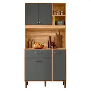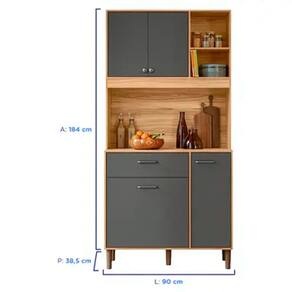 São 4 portas, 1 gaveta, prateleiras e 2 nichos muito bem distribuídas com ótimo espaço, para colocar louças, talheres, utensílios e muito mais. Faça uso também do tampo, caso queira decorar, guardar potes de alimentos, enfim, tenha liberdade para usar como quiser!