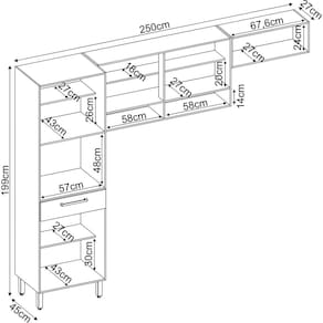 Pés com regulagem de altura para nivelar o móvel em relação ao piso.