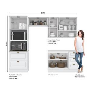 Composicao do Kit -AxLxP-: 1 Aereo 03 Portas 78 x 120 x 31,5 Cm; 1 Aereo 01 Porta Basc. 44 x 80 x 31,5 Cm; 1 Tampo 2,5 x 80 x 53,5 Cm; 1 Tampo p/Cooktop 2,5 x 80 x 53,5 Cm; 1 Ilha Gourmet 01 Porta Basc. 87 x 140 x 60 Cm; 1 Aereo Micro-ondas 44 x 80 x 47,5 Cm; 2 Balcao 02 Portas 87,5 x 80 x 51 Cm; 1 Balcao Pia 02 Portas e 03 Gavetas 87,5 x 120 x 51 Cm;
