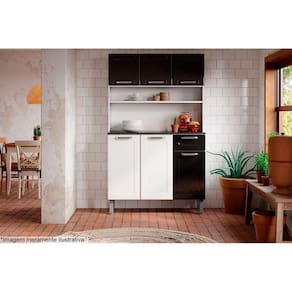 Kit de Cozinha Compacta Dona Maria c/ 6 Portas e 1 Gaveta 105cm Branco/Preto - Bertolini