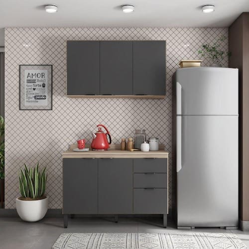 A cozinha FIRENZE composição 10 é formada por dois módulos, um Armário Aéreo 3P 120cm e um balcão 120cm com 3 portas e 2 gavetas com tampo. Seus pés são de polipropileno reguláveis se adequando as condições do chão, puxadores pretos com design moderno, corrediças e dobradiças metálicas. Estruturado em MDP com revestimento ultravioleta e acabamento fosco. Para garantir a qualidade do produto dentro da embalagem, as caixas são revestidas por um plástico termoencolhível e todas as peças são separadas por isomanta, tudo para preservar e evitar o atrito entre as peças dentro da embalagem. Você contará também com um manual com o passo a passo para auxiliar no momento da sua montagem. Acabamento da Prateleira: Pintura Escala de Brilho da Prateleira: Fosco Acabamento da Gaveta: Pintura Escala de Brilho da Gaveta: Material do Puxador da Gaveta: Acabamento da Porta: Pintura Escala de Brilho da Porta: Fosco Material do Puxador da Porta: Acabamento dos Pés: Acompanha Tampo: Sim Altura dos Pés: Ambiente Principal: Cozinha Complexidade da Montagem: Média: pode ser montado por mais de uma pessoa e/ou necessite de maior conhecimento para montagem Cor: Avena Touch/Grafito Cor do Produto: Avena Touch/Grafito Cor Flex: Cor Interna: Avena Escala de Brilho: Fosco Gaveta com Chave: Não Informações Complementares: Itens Inclusos: 1 Cozinha, kit deferragens e manual de montagem Linha ou Coleção: Firenze Manual de Especificação Técnica: Manual de Montagem e Instalação: https://cdn2.madeiramadeira.com.br/atributo/demobile-novo/988440-composiCAo-10-cozinha-firenze.pdf Material da Gaveta: MDP Material da Porta: MDP Material da Prateleira: MDP Material do Fundo: Material do Tampo: MDP Material dos Pés: PVC Medida de cada item (A x L x P): Armário Aéreo 67 x 120 x 29 / Balcão com Tampo 84 x 120 x 52 Medida do Recorte para Cooktop: Montagem Flex: Necessita Montagem: Sim O Balcão Acompanha Pia: Não Origem do Produto: Nacional Pés Reguláveis: Sim Peso: 63.05 Peso Máximo por Gaveta: 3 Peso Máximo por Prateleira: 3 Possui Pés: 05 Possui Portas: 06 Possui Prateleiras: 02 Possui recorte para Cooktop: Não Possui Rodízio: Não Recomendações de Uso, Manutenção e Limpeza: Flanela Seca Resistente à Chuva: Rodízio com Trava: Sapatas Niveladoras: Não Sistema de Montagem: Parafusos e cavilhas Suporta Até (kg): Tamanho Indicado do Tampo ou Pia: Tipo de Corrediça da Gaveta: Metálica Simples Tipo de Dobradiça da Porta: Metálica Tipo de Madeira Maciça: Tipo de Madeira Maciça da Gaveta: Tipo de Madeira Maciça da Porta: Tipo de Madeira Maciça da Prateleira: Tipo de Madeira Maciça do Puxador da Gaveta: Tipo de Madeira Maciça do Puxador da Porta: Tipo de Madeira Maciça dos Pés: Tipo de Puxador da Gaveta: Externo Tipo de Puxador da Porta: Externo