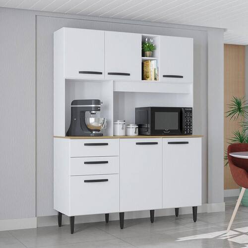 Detalhes Funcionais: Portas equipadas com dobradicas metalicas para um uso prolongado e eficiente, e Puxadores de Plastico modernos e ergonomicos. Transforme sua cozinha em um ambiente mais organizado, funcional e com o toque de qualidade que so a Poquema oferece!