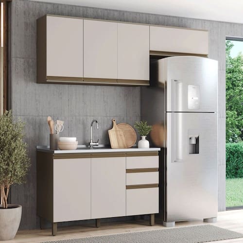 - Acompanha: Cozinha Compacta, Kit Ferragens, Manual de Montagem