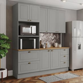 Itens Inclusos: 1 Aéreo 3 portas, 1 Balcão Pia 03 Gav e 02 Ptas com tampo, 1 Torre Quente com espaço para dois eletros.
