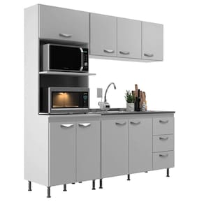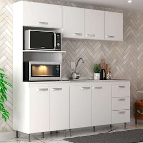 que tal a cozinha ipanema?compacta, mas que não deixa faltar espaço para nenhum item importante, a cozinha ipanema vai ser a sua maior aliada na hora de organizar e preparar as refeições. graças aos compartimentos de tamanho ideal para armazenar alimentos, panelas e utensílios variados, você consegue deixar o ambiente sempre em ordem e com tudo fácil de pegar para quando for preparar aquela receita especial. por fora ela valoriza a decoração, já que conta com cor elegante e versátil, além de detalhes charmosos que dão um toque extra de bom gosto ao ambiente. aí é só harmonizar com enfeites e eletrodomésticos para deixar o espaço e o dia a dia mais completos. Marca: Modern