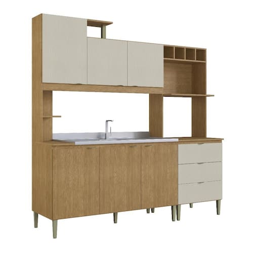 Amplo Espaço de Armazenamento: Com 6 portas, 3 gavetas e 3 prateleiras, você terá espaço suficiente para organizar todos os seus utensílios de cozinha.