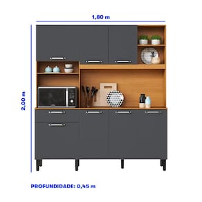 Cozinha Compacta Itatiaia Madri 180cm em Madeira Cinamomo/Grafite Compacta no tamanho, gigante em estilo e praticidade