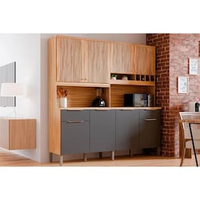 Kit de Cozinha Compacta Concord c/ 8 Portas e 2 Gavetas 200x206cm Amendoa/Grafite - Ronipa