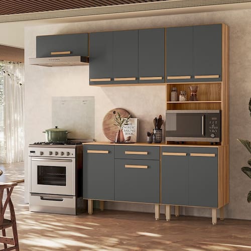Cozinha Compacta Lemon com Balcão Freijó Chumboo Nicioli - Cinza