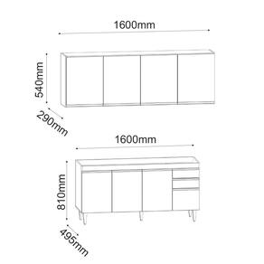 Dimensões do Balcão: Altura: 81 cm Largura: 160 cm Profundidade: 49,5 cm
