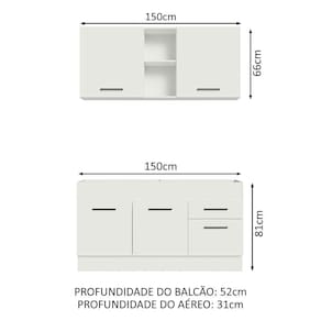 - 52 cm de profundidade no balcão e 31 cm no aéreo