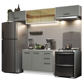 O acabamento da estrutura é branco e o das portas e frentes das gavetas é cinza. É feito em Pintura Poliéster com 7 camadas de proteção resistentes a álcool, água e calor.