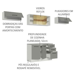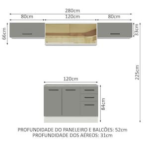 - 52 cm de profundidade no balcão e 31 cm nos aéreos