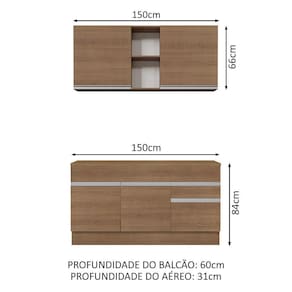 - Um (1) Armário Aéreo de 150 cm com duas (2) portas e dois (2) nichos centrais